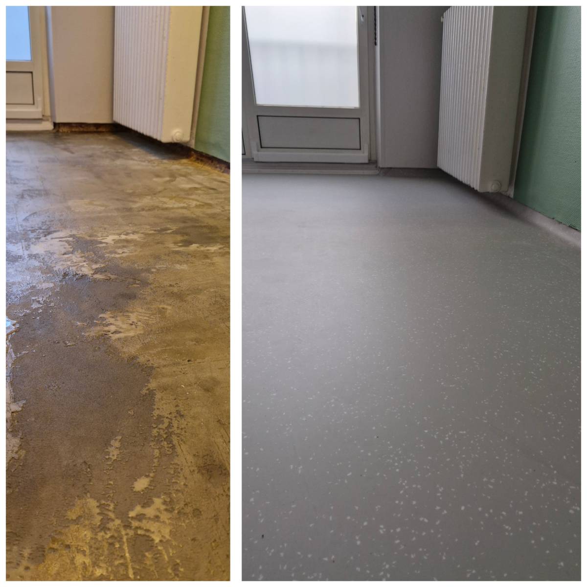 Rénovation d’une chambre dans une clinique à Haguenau, avec application d’un primaire, suivi d’un ragréage et de la pose d’un PVC soudé à chaud U4P4 de chez Gerflor, en Alsace, dans le Bas-Rhin.